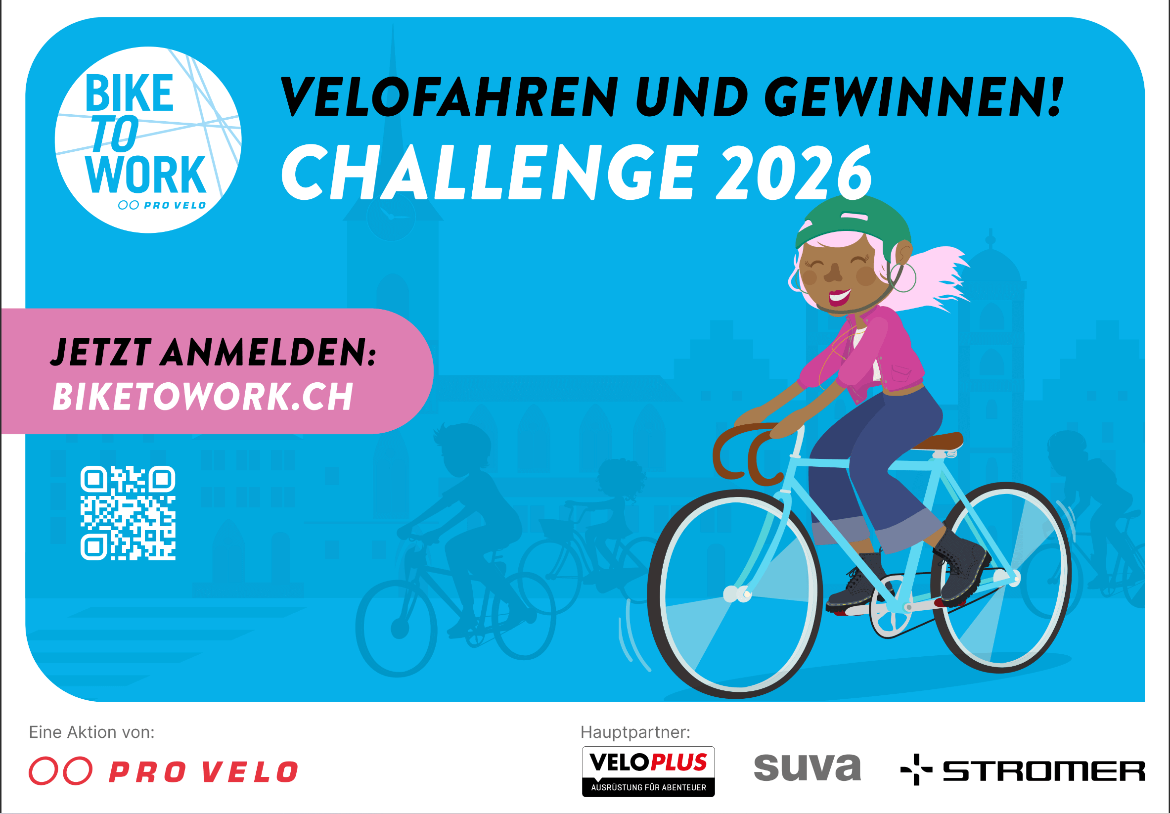 Führ zum Beispiel eigene Aktivitäten rund ums Velo durch, organisier eine firmeninterne Challenge oder überrasch die Mitarbeitenden mit einem bike to work Znüni. Anlässe und kleine Goodies helfen dir, mehr Teilnehmende zu gewinnen. Kurz: Je mehr Aufmerksamkeit du im Betrieb erregst, desto erfolgreicher die Challenge!