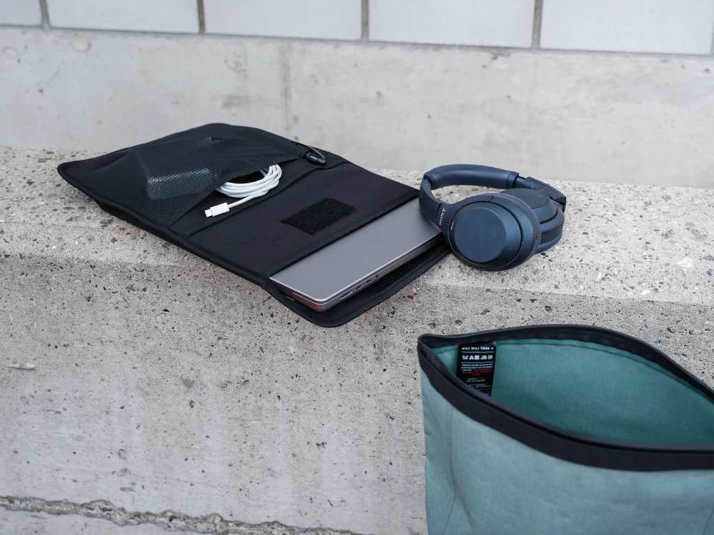 Made from 100% recycled PET, it is waterproof, durable, and combines functionality, sustainable design, and a minimalist style.